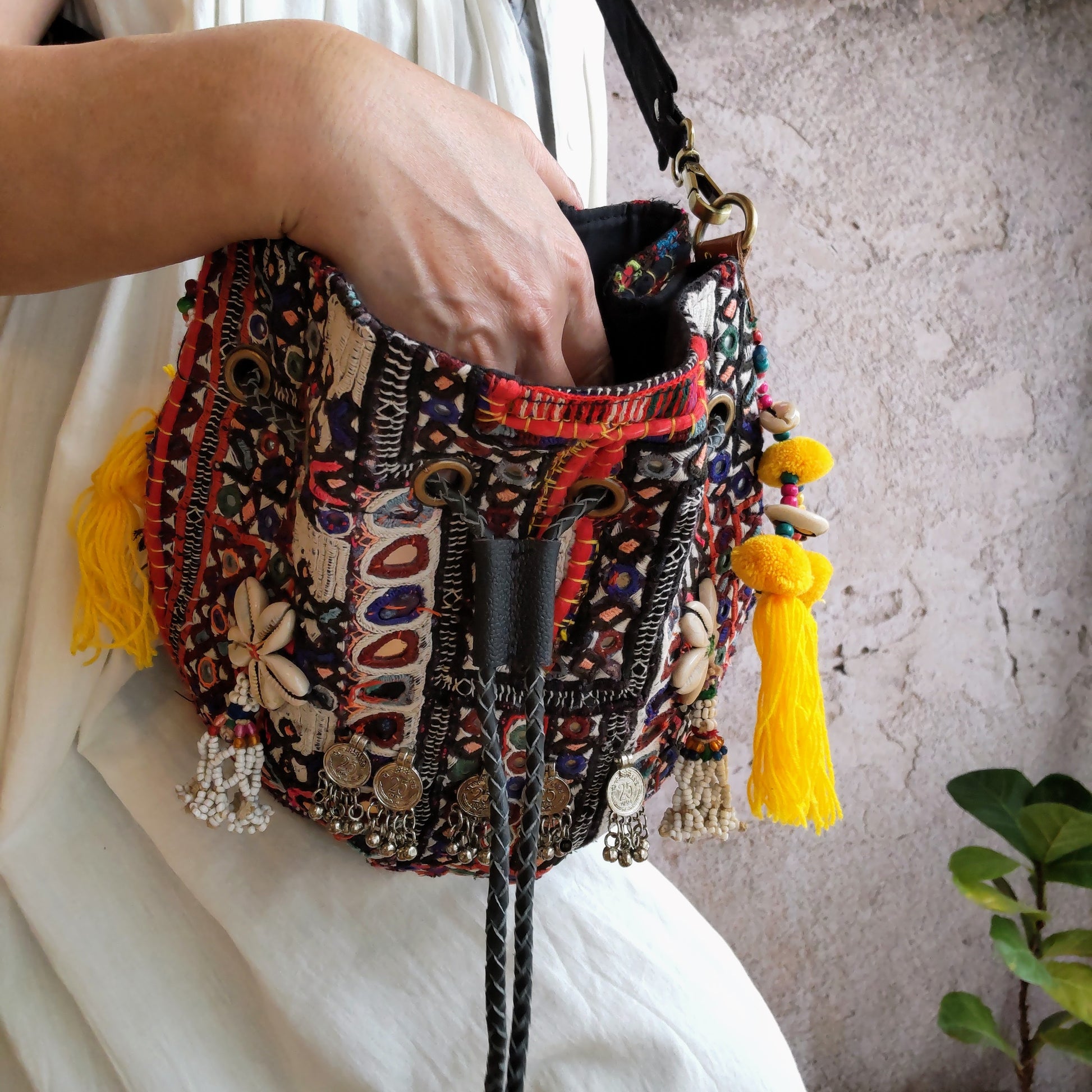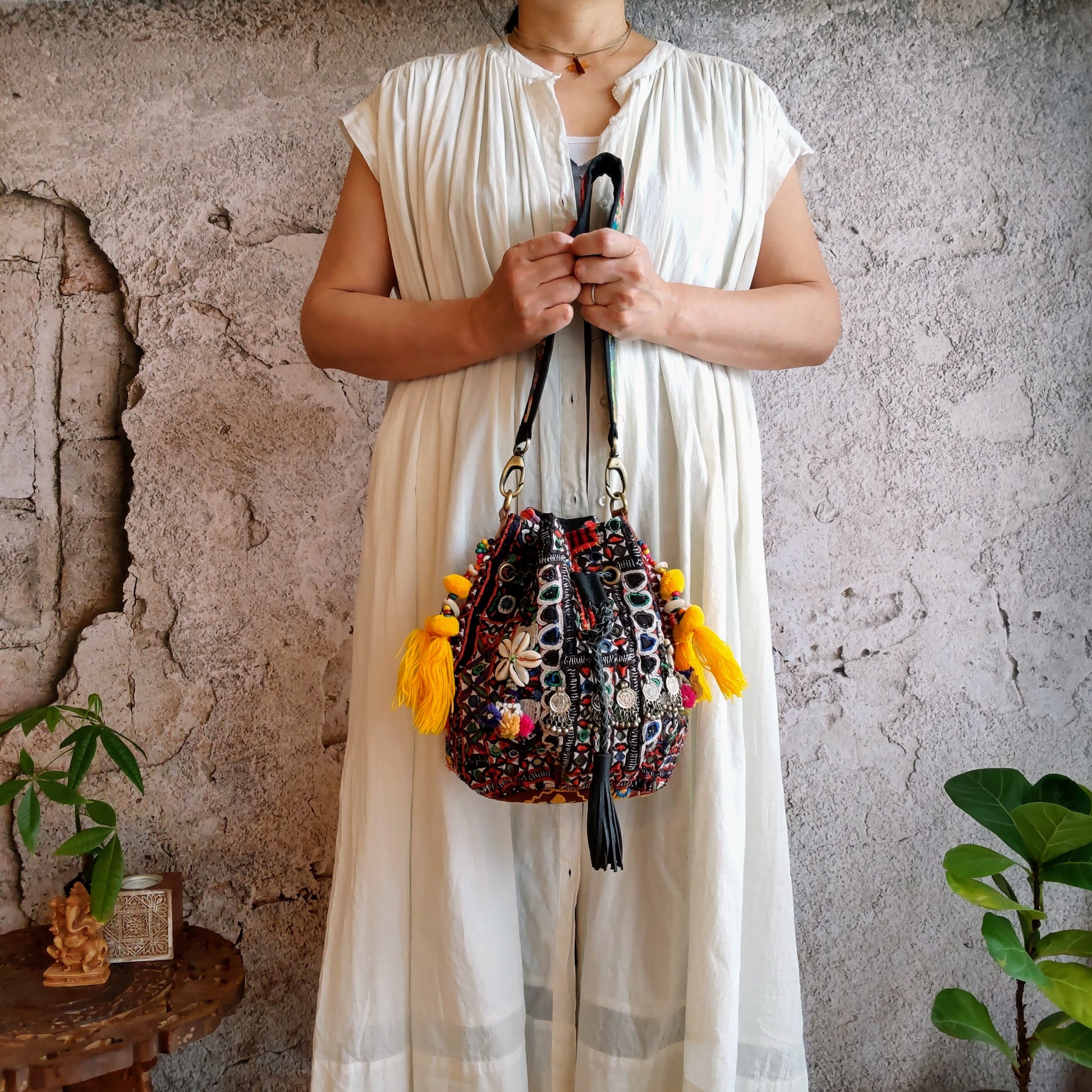 *素材:ヴィンテージコットン、ミラー、ビーズ、コイン、ポンポン