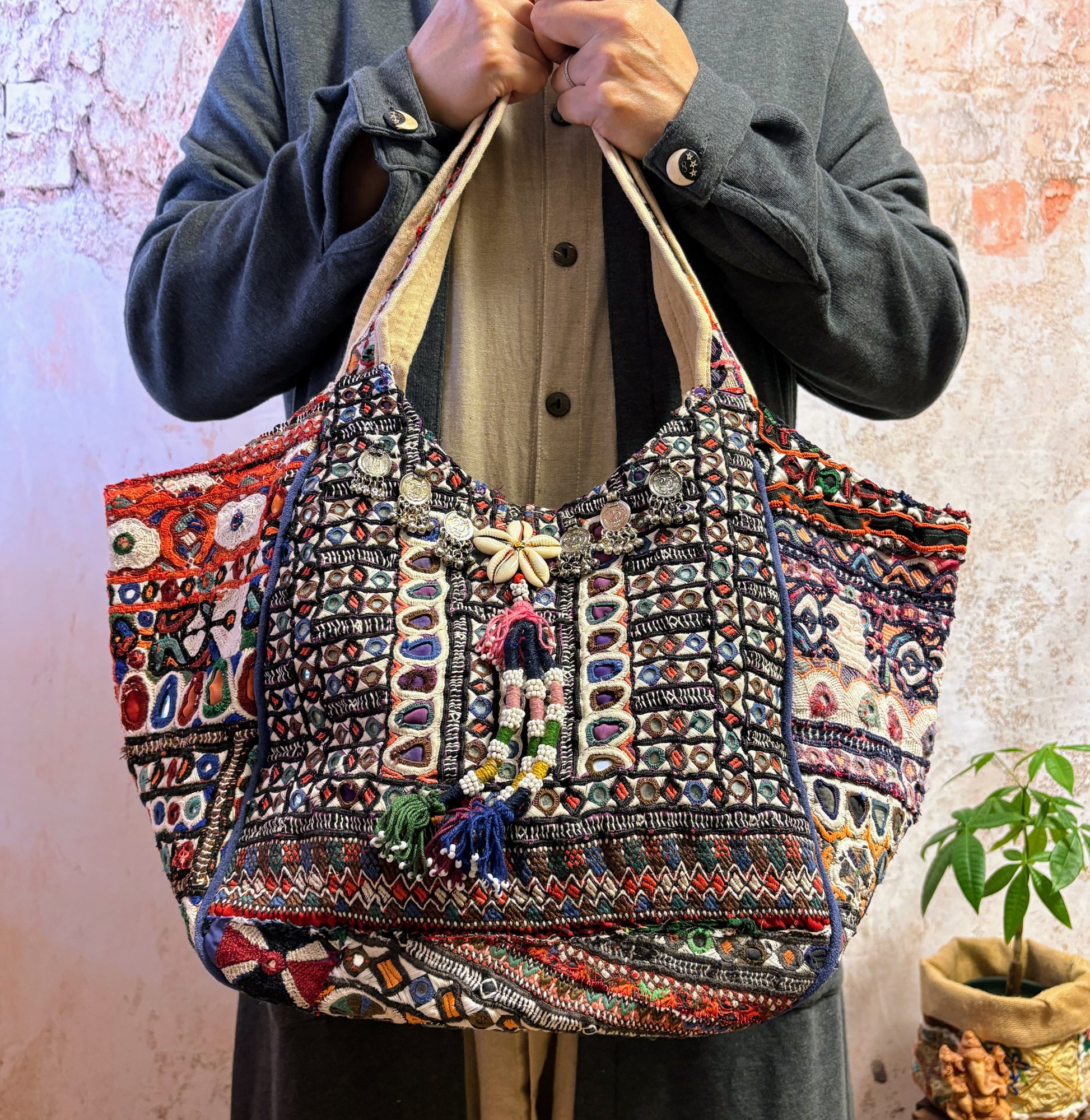 HTL-128a ミラー刺繍エスニックトートバッグ(L)