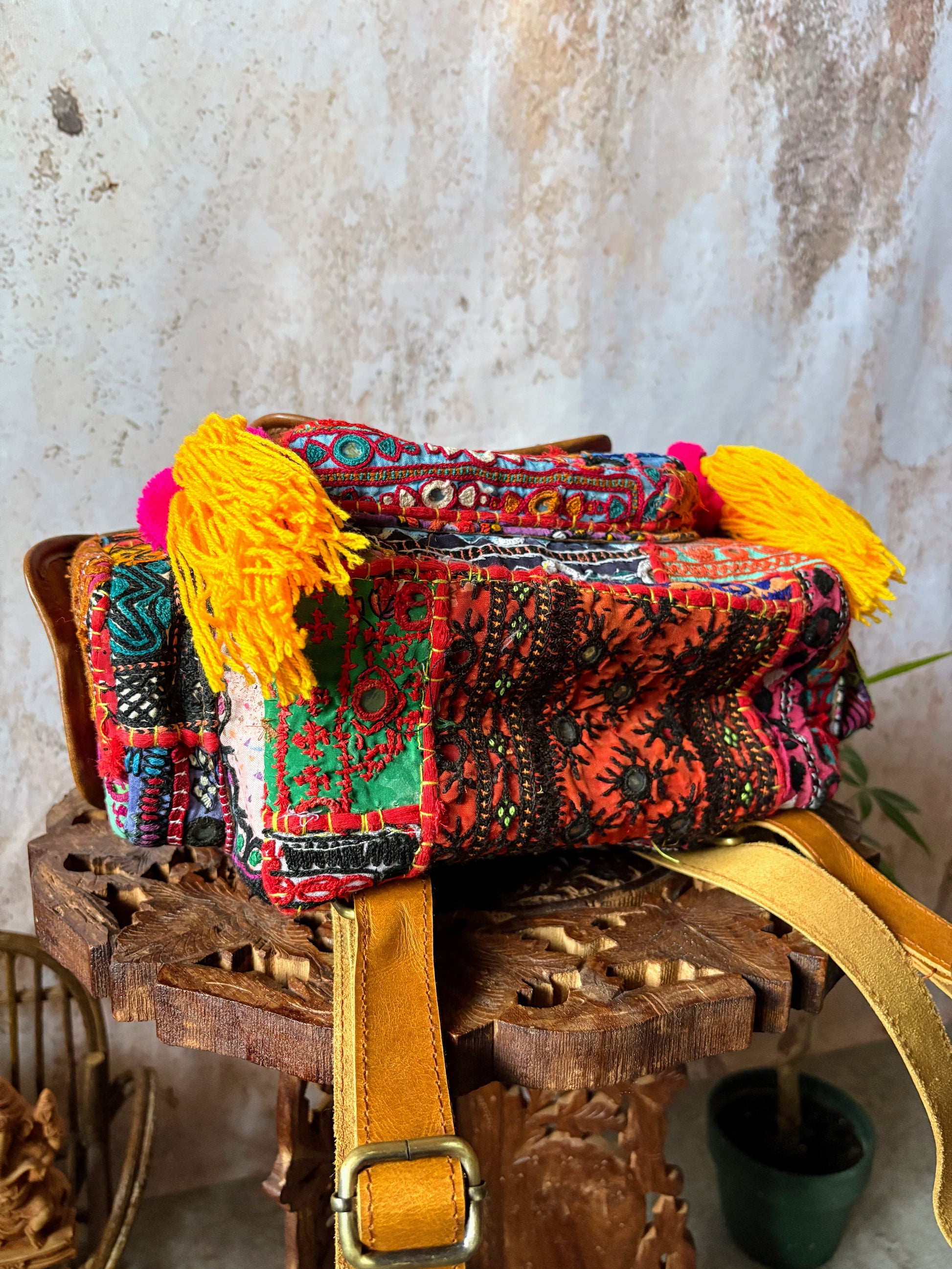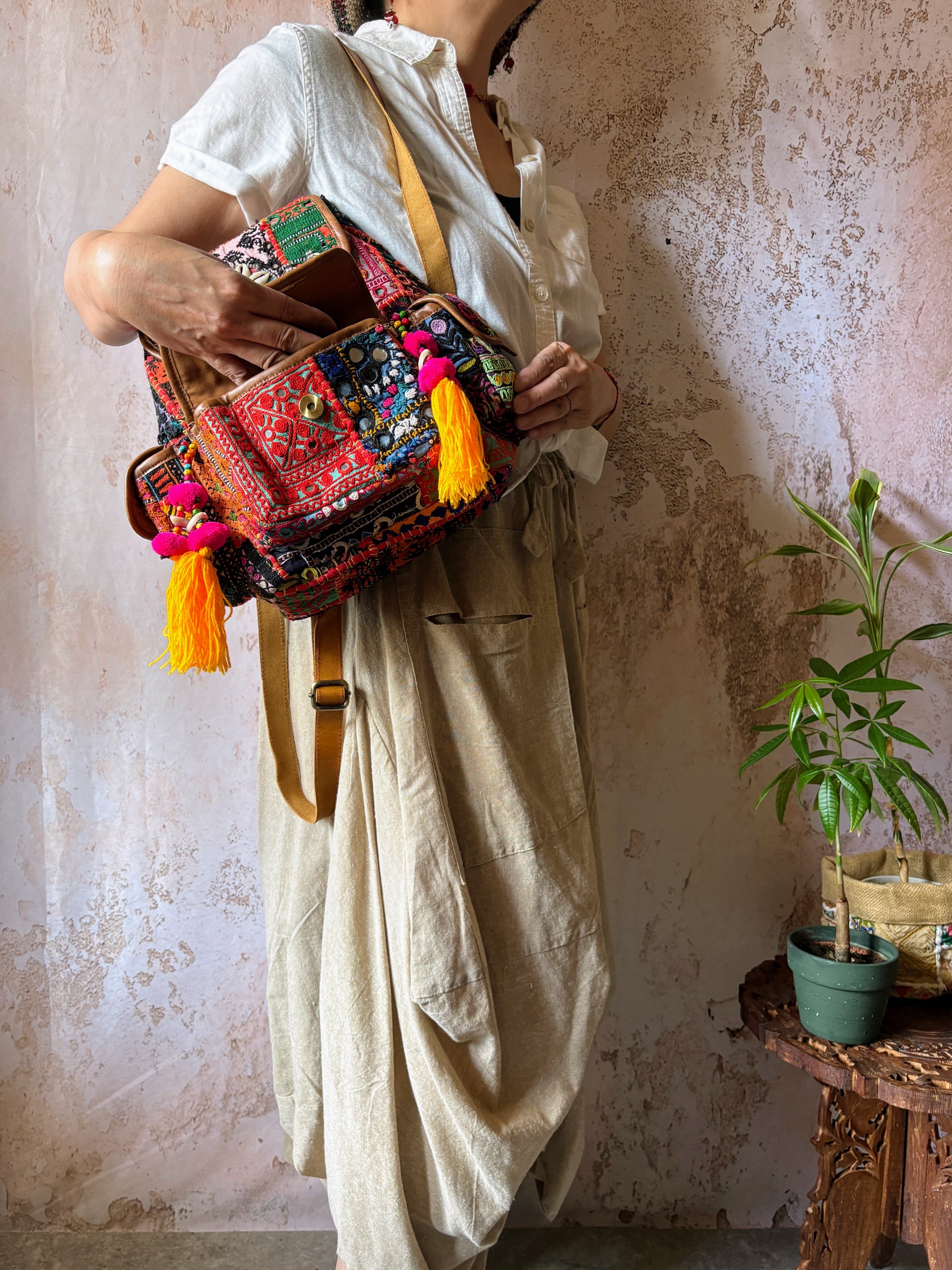 *素材:ヴィンテージコットン、革、ミラー、ポンポン、ビーズ、シェル、コイン