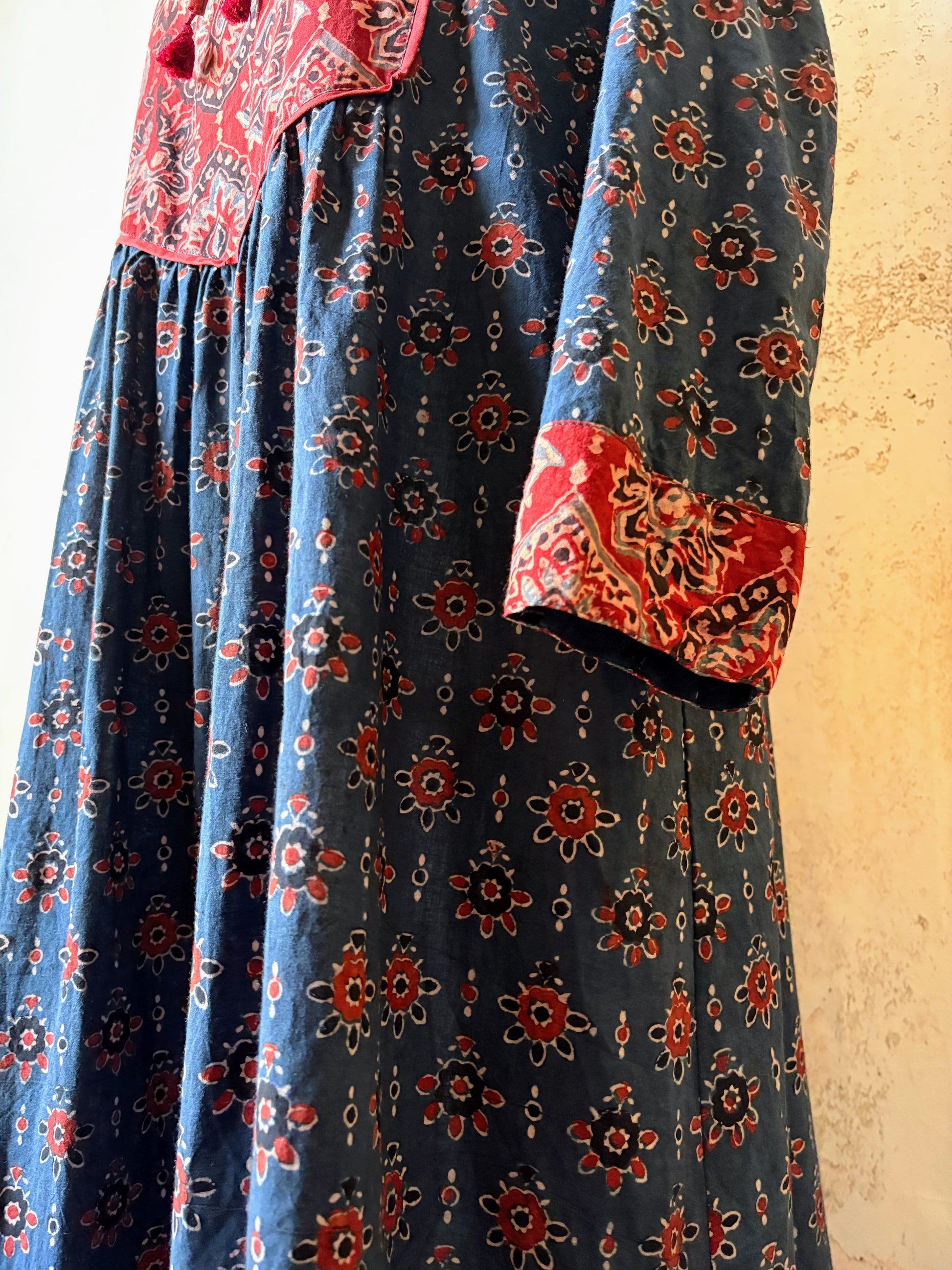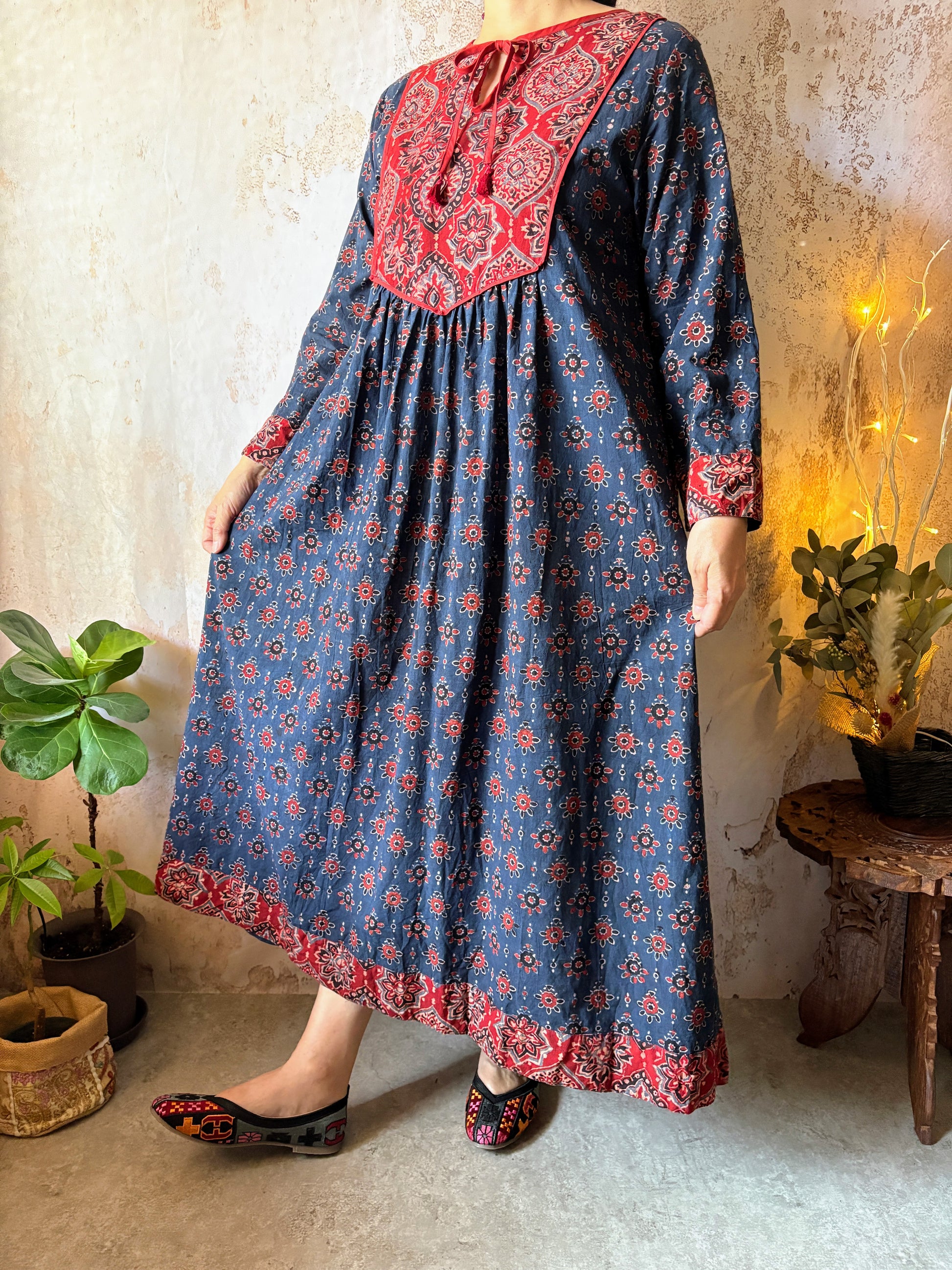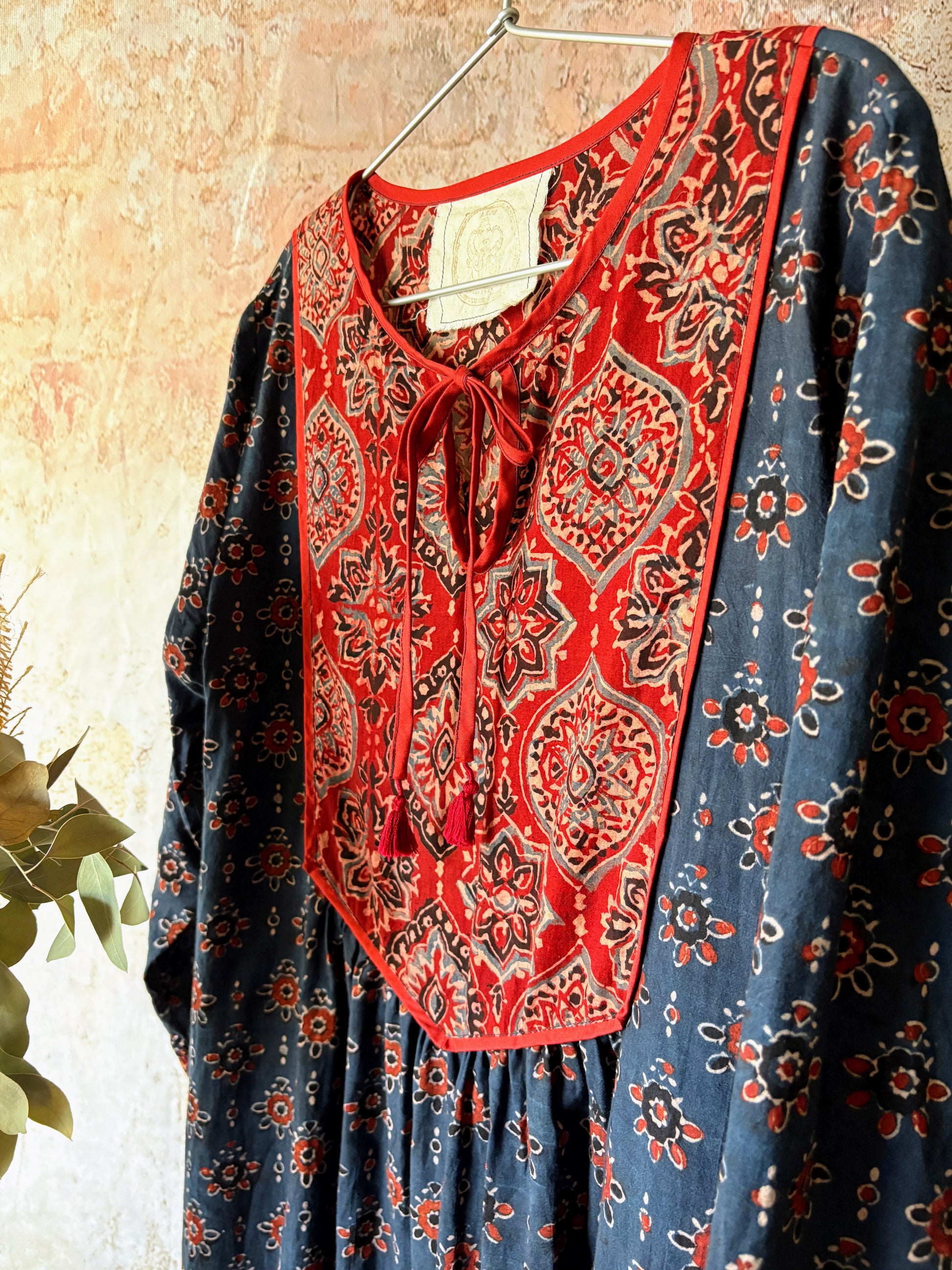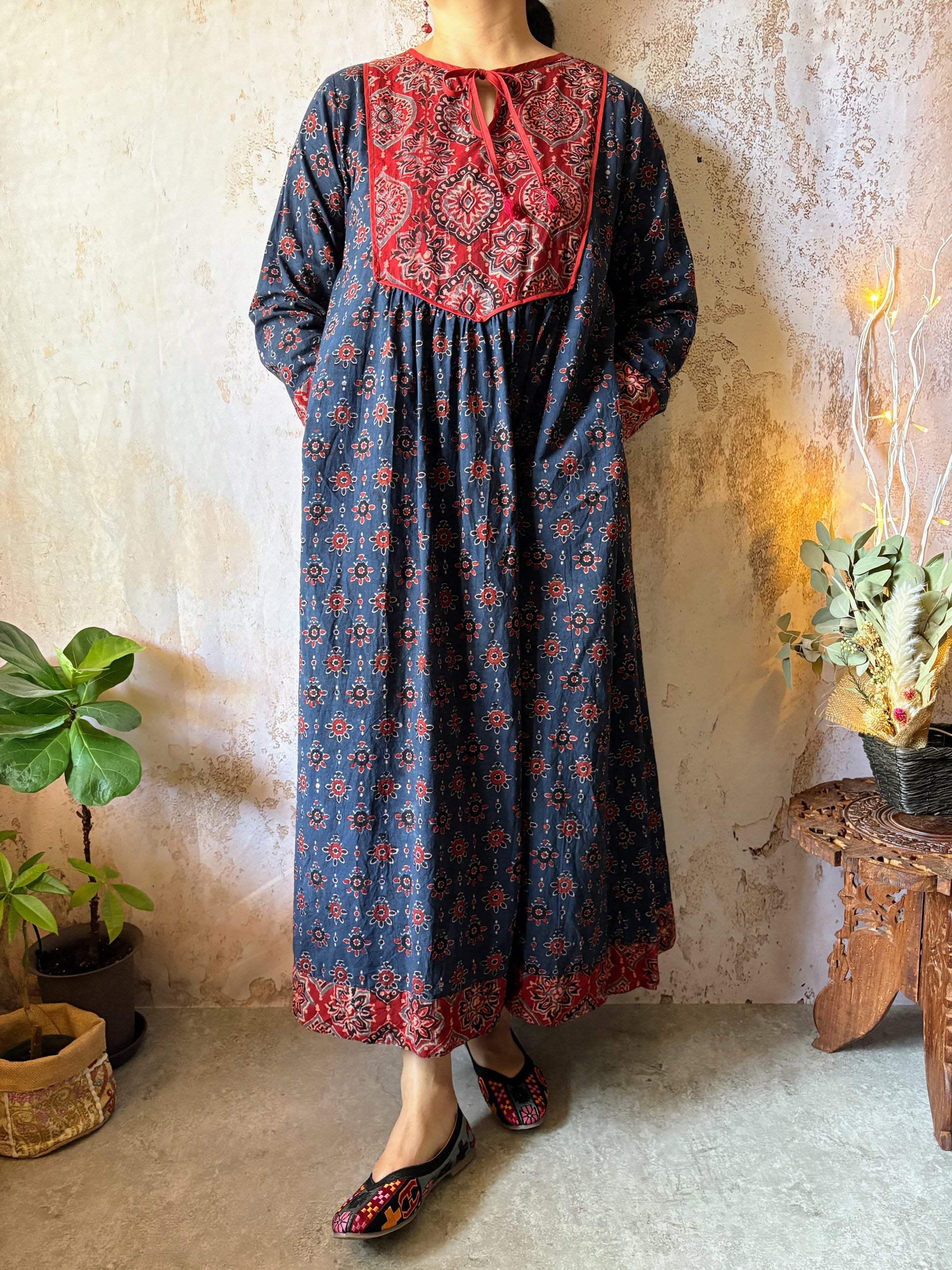 AF-001 アジュラックロングフレアワンピース/ネイビーxレッド