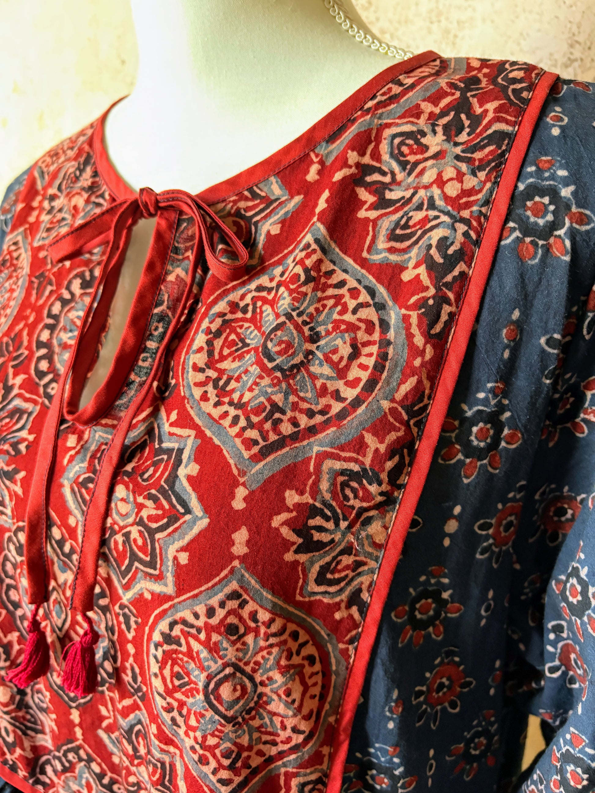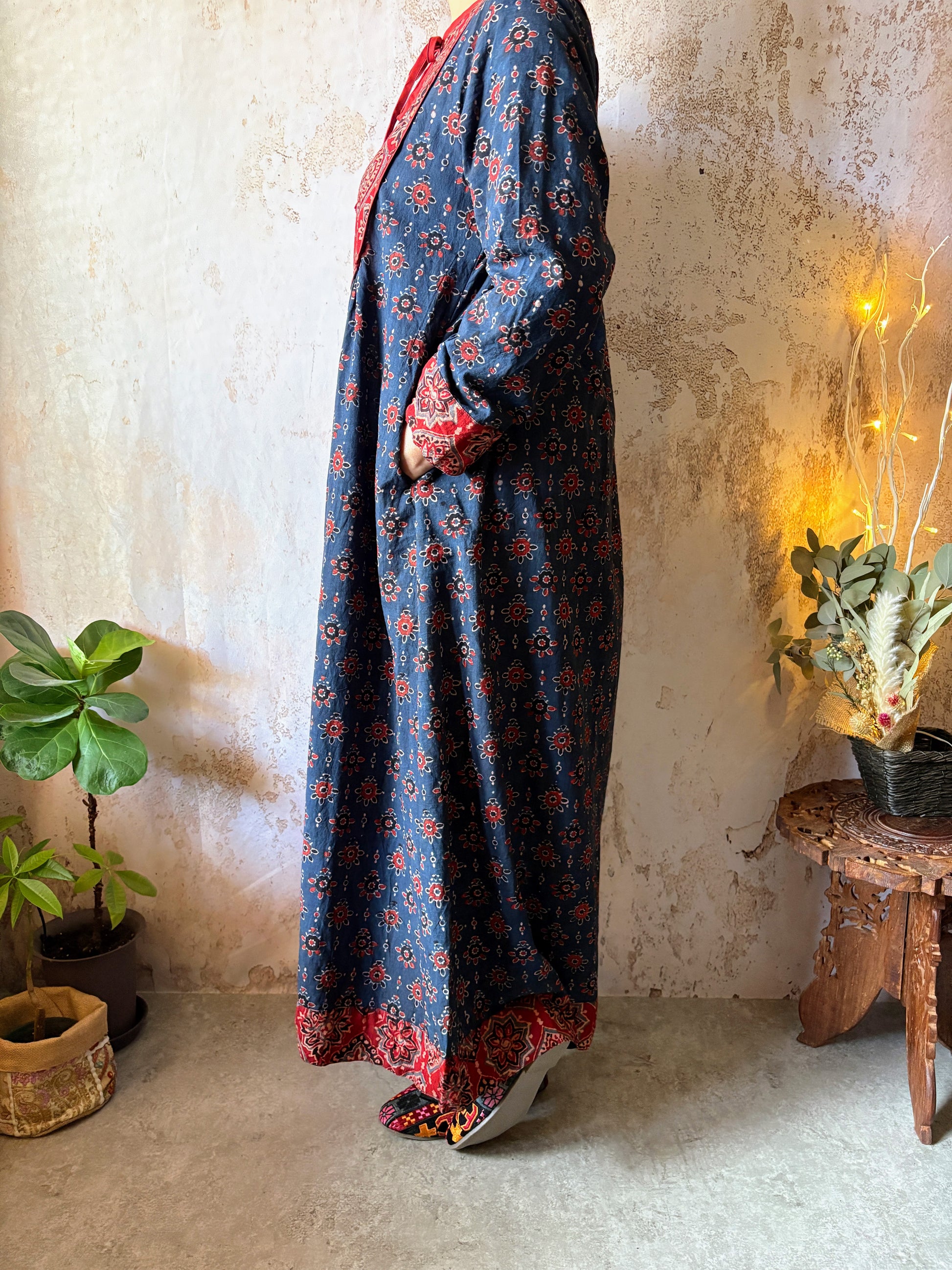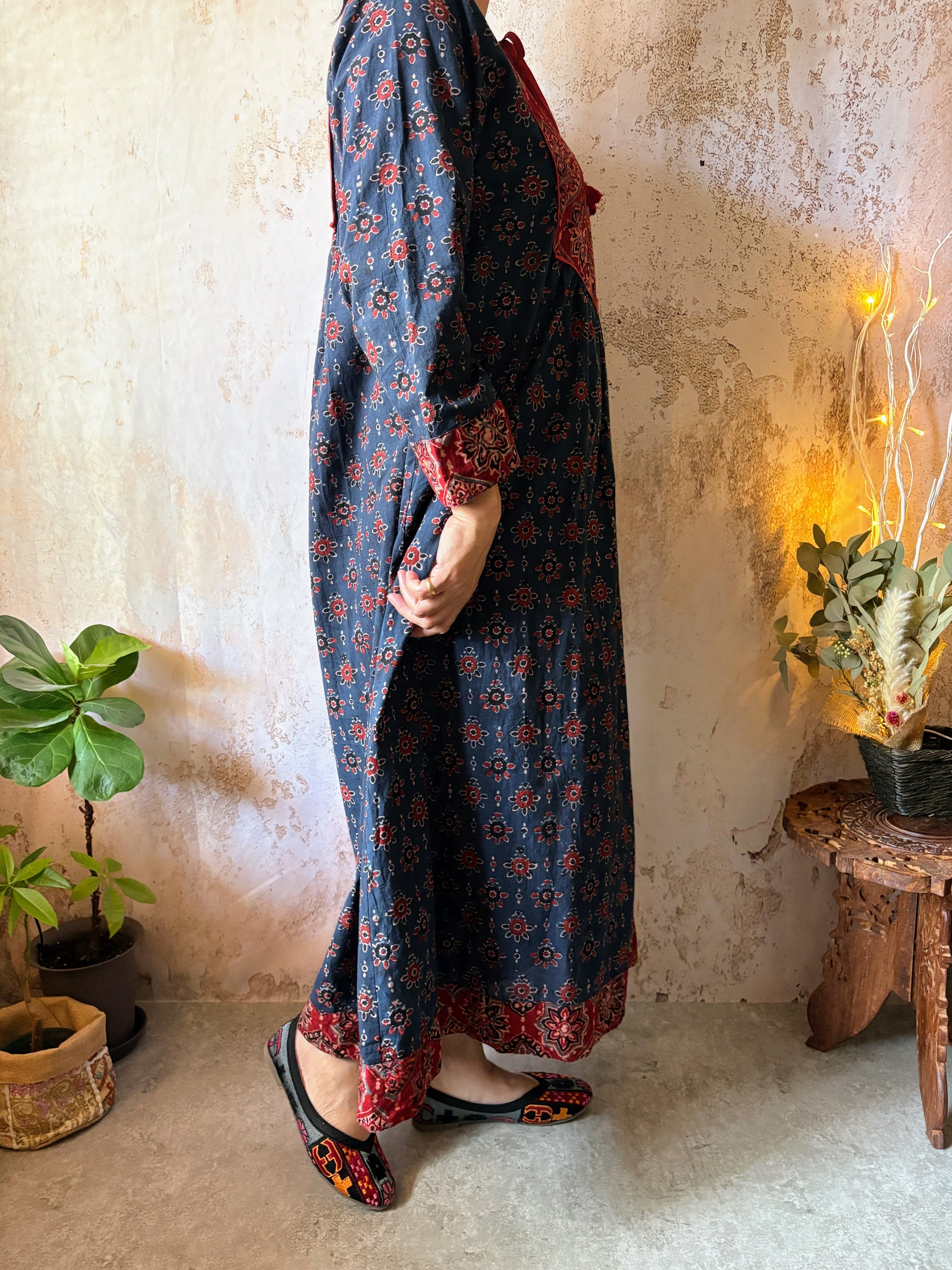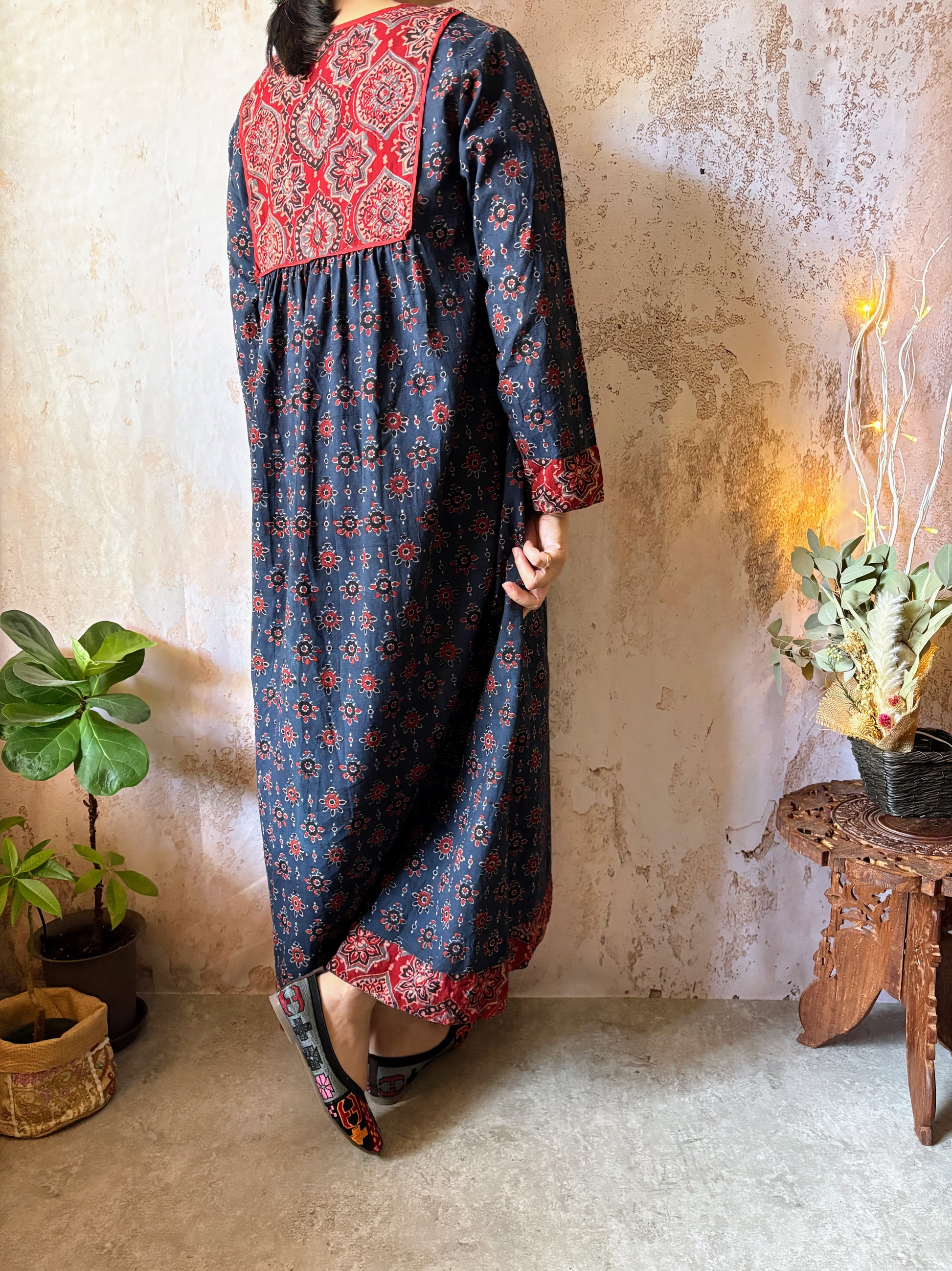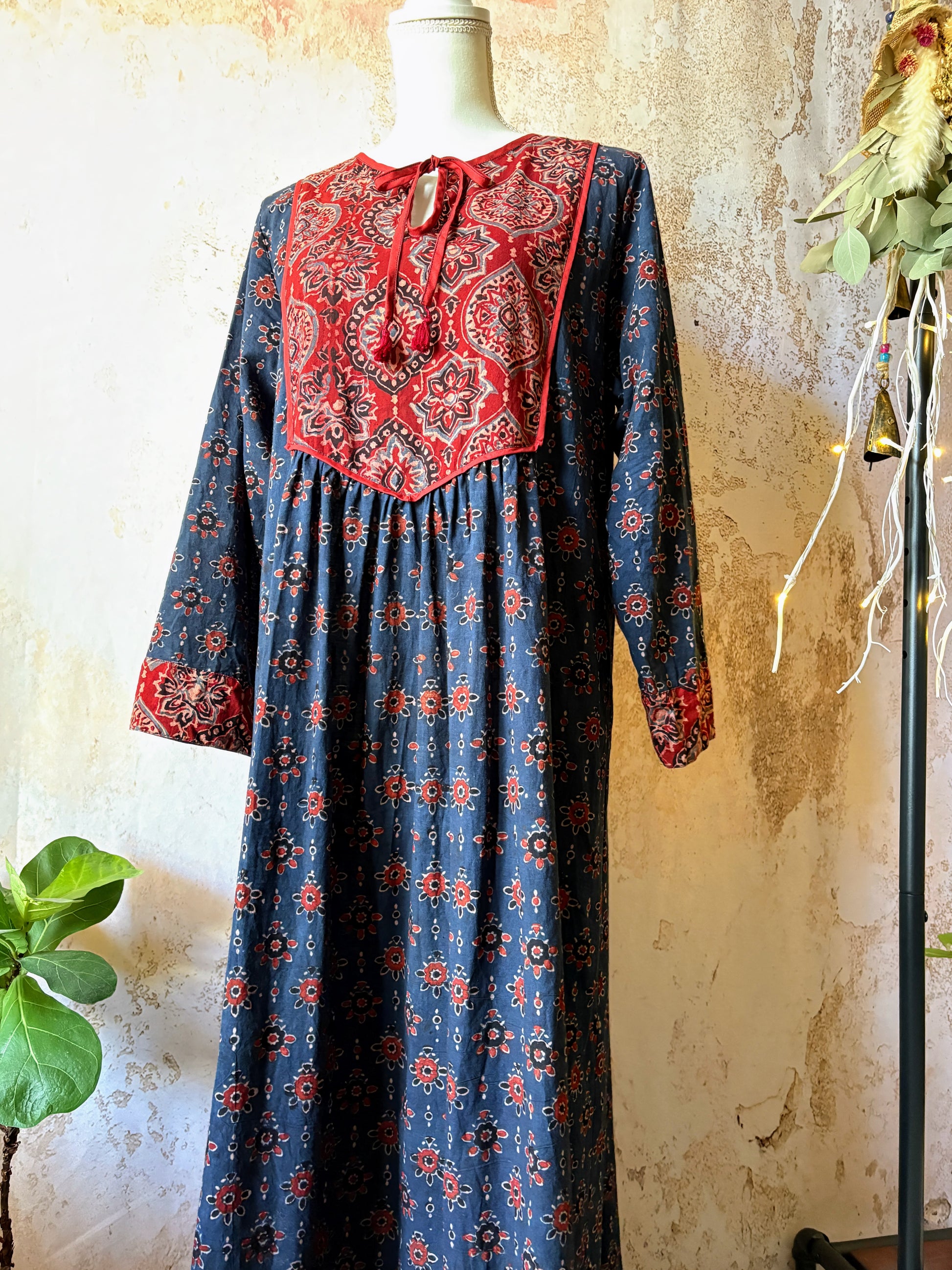 AF-001 アジュラックロングフレアワンピース/ネイビーxレッド